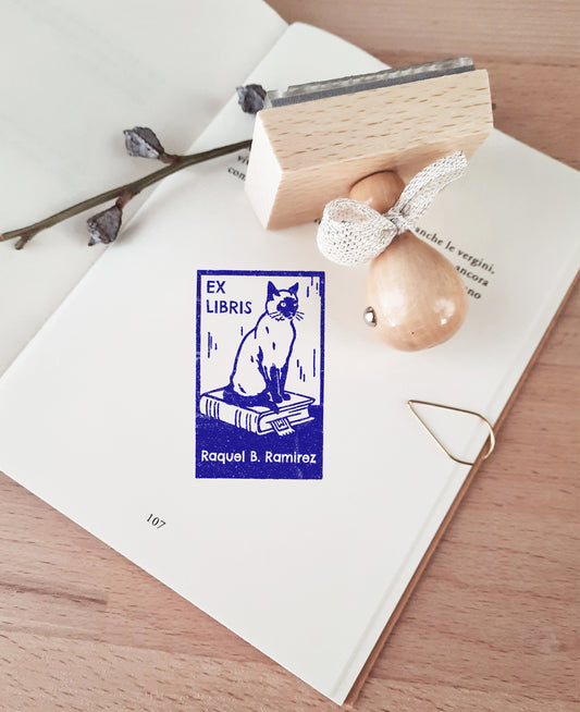PERSONALIZED EX LIBRIS STAMP - Cat Design