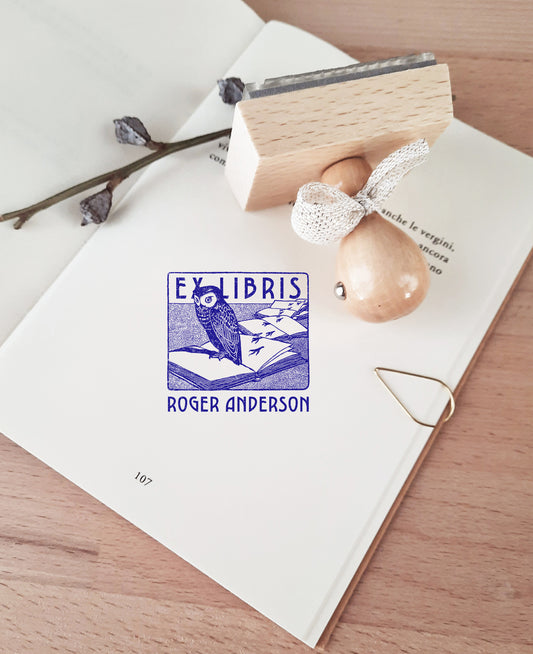 PERSONALIZED EX LIBRIS STAMP - Owl Design