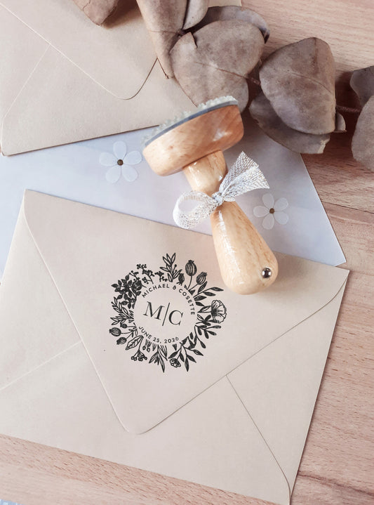 PERSONALIZE WEDDING STAMP - Floral Wreath
